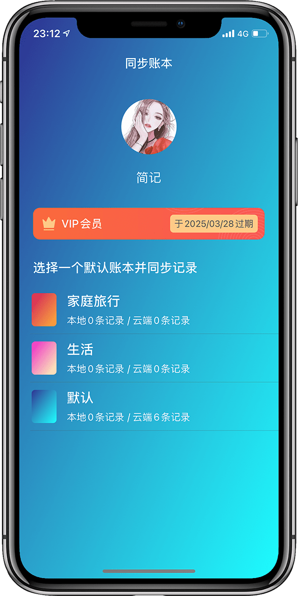 简记支持多账本云端同步,所有分类和记录信息全部可以保存在云端,保证数据安全更上一层楼!